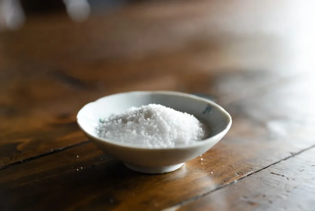 - 小さじ1杯程度の塩を小皿に出す